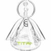 Not only does the American Helix Kronos Rig look exceptionally amazing, it provides one of the most tranquil hits imaginable and is always easy on the lungs. The Titan Series Kronos is a superior hand blown concentrate rig with a sleek and ultra-modern design. The Kronos is equipped with a 14mm banger hanger joint and a stemless design that sets this piece apart from the rest. As you draw, your smoke is split into two separate air paths that run along the side of the water pipe and into the Swiss perc beaker base. The unique stemless diffuser pours each hit into the center of the beaker where your smoke is reconvened and effectively filtered through water by the Swiss percolator before it can travel upwards.Β
