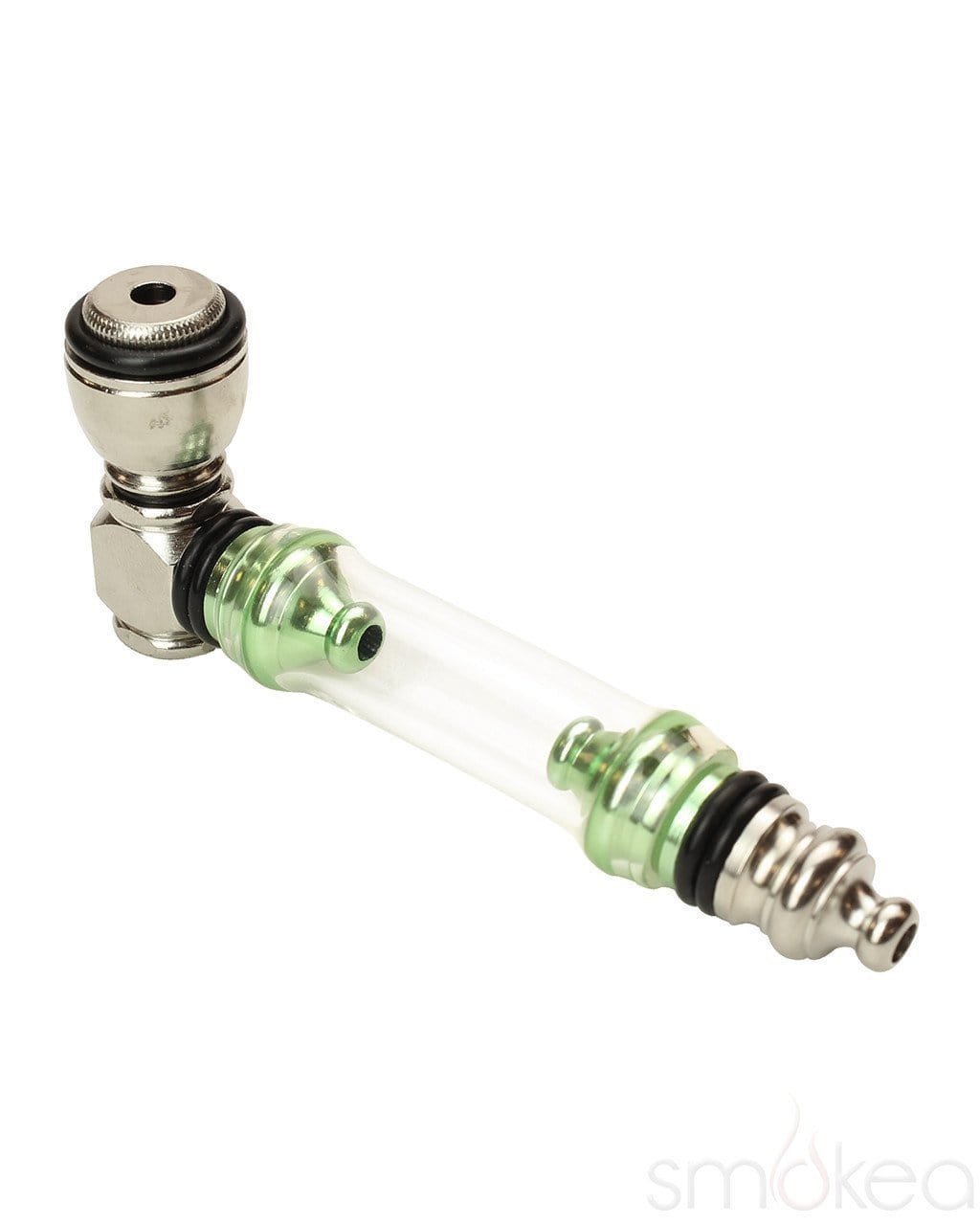 The Bonz metal pipe features a crystal clear see-through stem so you can see the smoke in action! It measures 3.5″ in length and is available in 5 colors. All parts disassemble for easy cleaning.
