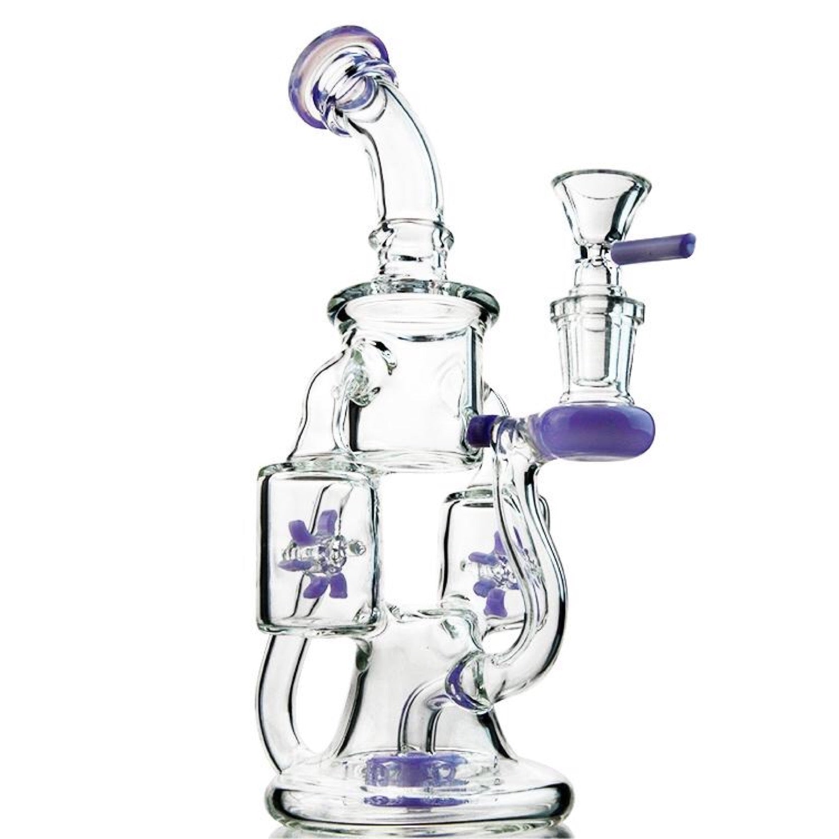 Despite its 10β inch stature, this piece rips like a bong twice its size. The extensive airpath paired with a triple threat of dynamic percolators allow the Double Windmill Recycler to provide ultra cool rips from your dry herbs with minimal harshness. This CaliConnected water pipe is complete with your choice of matching colored glass accents on the flared mouthpiece, pirateβs helm perc & spinning windmill percs, the reinforced downstem, 14mm joint, and the included 14mm bowl piece handle. We recommend filling the bottom chamber of the Windmill Recycler Bong entirely with water so on your first inhale water is sucked into the two floating chambers. From there, the bottom chamber should remain ΒΎ full with water and the chambers with the spinning windmill percs will stay filled about Β½ way filled. Itβs best to add water into the fixed downstem & inhale to work the water upwards, rather than pouring water into the mouthpiece.