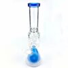 The blown-out middle chamber on the Pyramid Perc Beaker Bong features studded glass accents and works like a recycler chamber, enlarging the airpath to give your smoke some extra time to cool down within the glass. The massive straight neck was built to hold copious amounts of ice for extra cold rips, complete with a flared mouthpiece on top for easy handling. The internal pyramid perc and mouthpiece are both made from matching blue glass that give this water pipe unprecedented style. Enjoy top-notch filtration and extra smooth hits with the 16” Pyramid Perc Beaker Bong from the best online head shop!