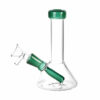 The CaliConnected Conical Mini Beaker Bong measures 5.25” inches tall and features a fixed downstem. This beaker-style water pipe includes a 14mm male bowl slide with a handle.
