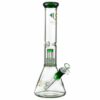 The Diamond Glass UFO Perc Beaker Bong measures 14” inches tall and is made from premium borosilicate glass at 5mm thickness. Large gold Diamond Glass decals adorn the side of the beaker and straight neck adding to the pristine aesthetic while a comfortable rounded mouthpiece tops things off. The entire beaker bong is available in your choice of blue or green matching colored accents on the water pipe joint, mouthpiece, and top of the UFO perc. Simply choose your favorite color and enjoy powerful water filtration from a beautiful, display-worthy piece of art with the 14” UFO Perc Beaker Bong from Diamond Glass!