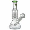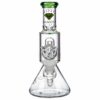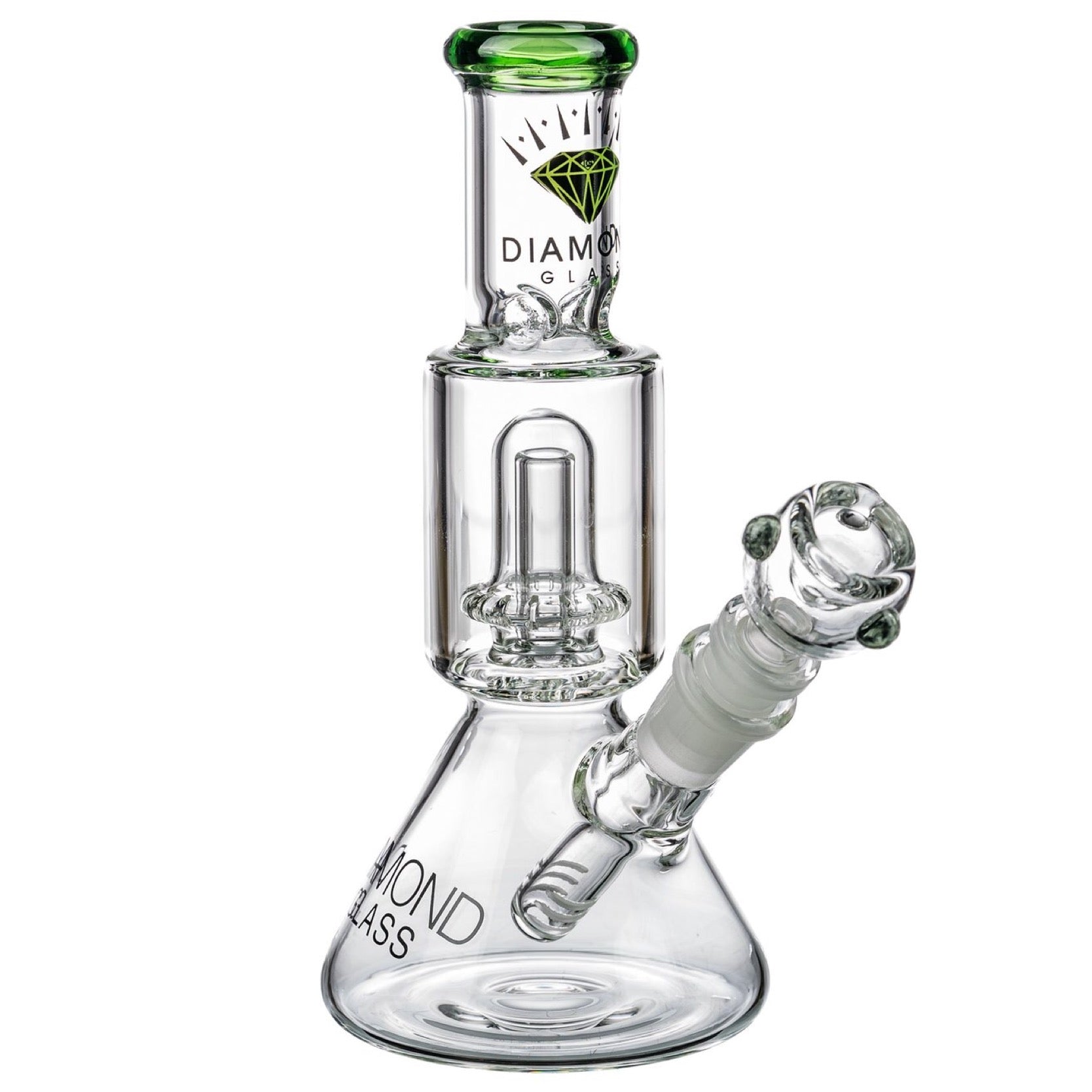 This compact beaker bong from Diamond Glass features an unmistakable design that will easily find its place on your shelf. Despite its 8” inch stature, the Short Neck UFO Beaker Bong is packed with style and functionality that will provide smooth rips day in & day out. This scientific glass water pipe begins the filtration process with a removable 4” downstem that diffuses each rip through water within the beaker base. The enlarged middle chamber makes this piece easy to handle and is equipped with a mini UFO perc that adds a second layer of moisture-conditioning to your smoke. A triple-pinched ice catcher just above allows you to add some ice into the neck and provides the final touch of cooling power. The Short Neck UFO Beaker Bong is finished off with Diamond Glass decals on the base and straight neck, with matching colored glass accents in your choice of white, clear, or green on the rounded mouthpiece and Diamond Glass logo. Add a compact yet highly powerful water pipe to your glass collection today with the Diamond Glass Short Neck UFO Beaker Bong.