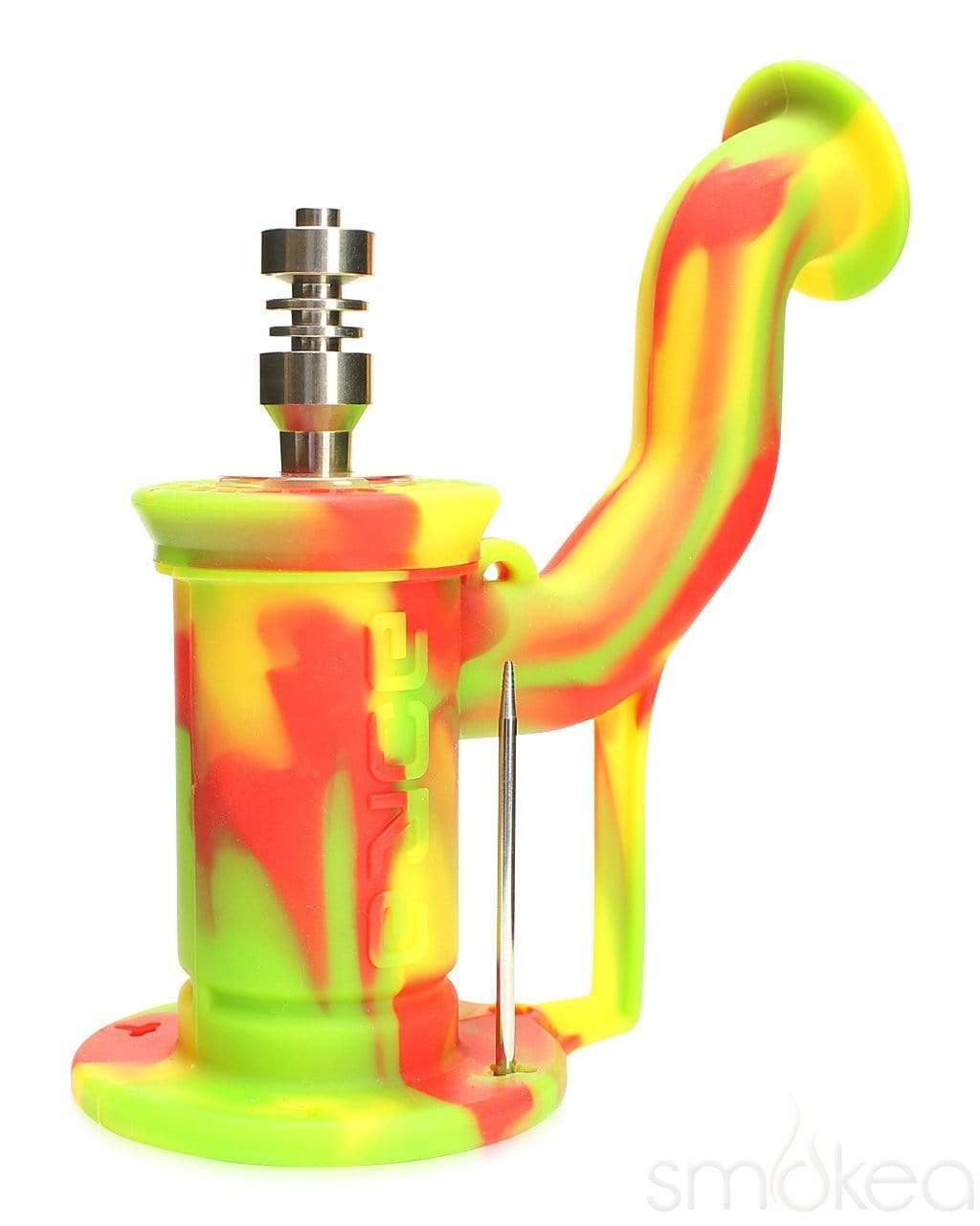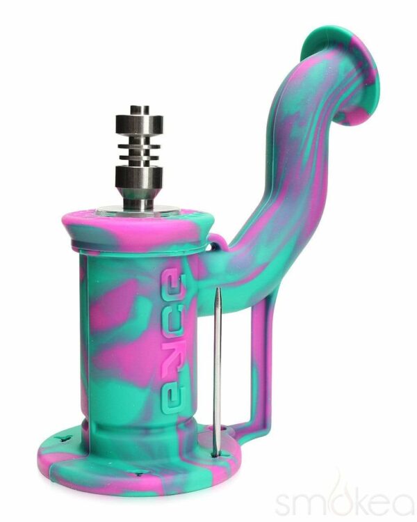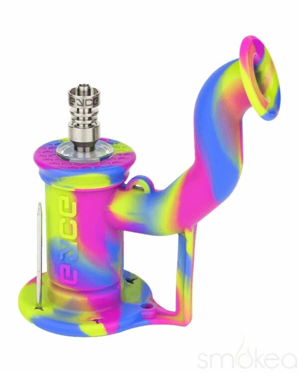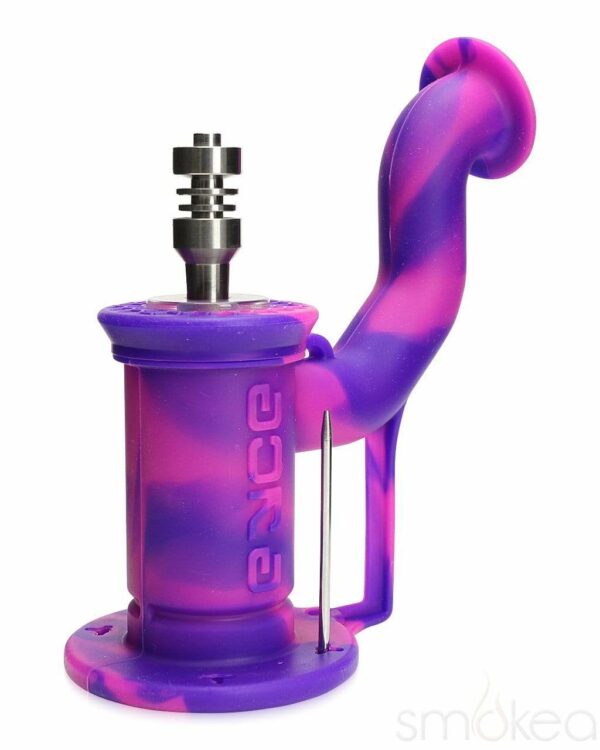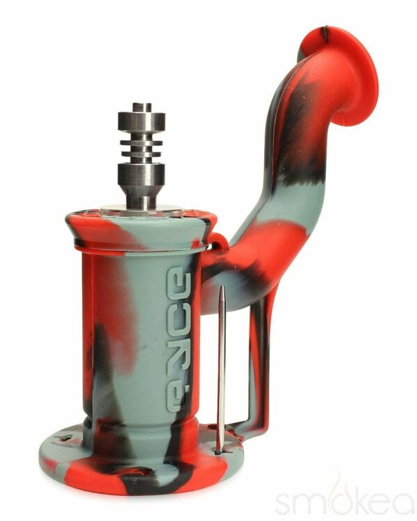 Upgraded from its predecessor, the Rig II boasts epic design upgrades once again making it the best silicone rig on the market. Our new 10mm glass collar is the most notable of the updates, designed to hold the included titanium nail, the 10mm glass collar acts as a heat barrier, protecting the silicone and extending the life of the rig. Equipped with reinforced chamber walls, this next generation rig has enhanced stability making an evening better smoking experience than our original Eyce Rig. The stem cap has also been upgraded with thicker silicone walls. In addition to our signature built-in concentrate container and four tool slots, the Rig II has a new tool slot for holding an upgraded 10mm Carb Cap. You should also check out Eyce water pipe options for a unique smoking experience with a different material.