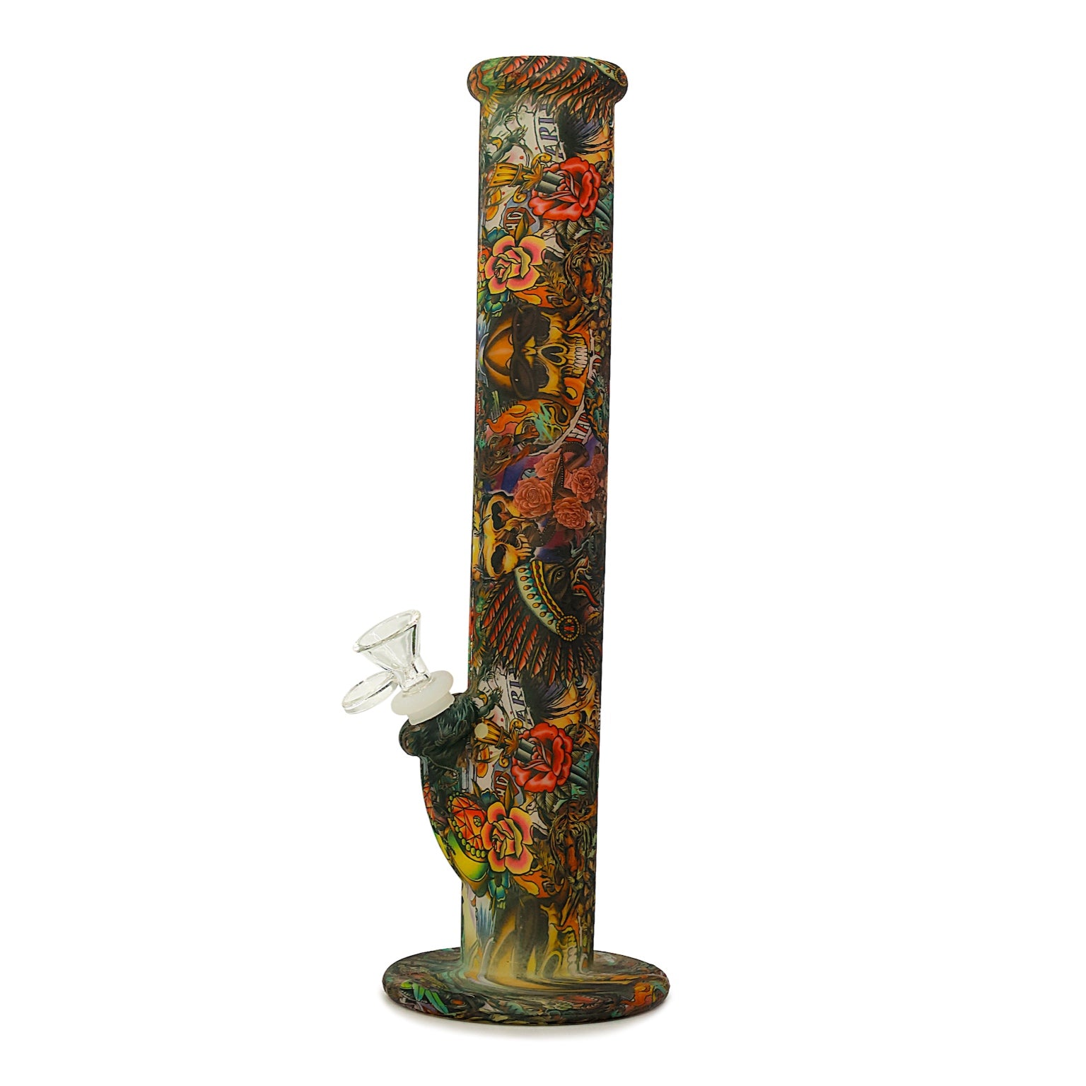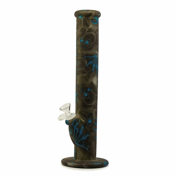 Put an end to broken glass pipes with this Silicone Straight Tube Bong from the best online head shop! Made from high-quality silicone that glows in the dark, these silicone water pipes are practically indestructible and decked out with captivating artwork guaranteed to turn heads. Each Glow in the Dark Silicone Straight Tube Bong measures 14” inches tall and features thick silicone walls that won’t break if dropped, a sturdy silicone flared base, and an ergonomically rounded mouthpiece. The downstem and 14mm dry herb bowl piece are each removable for easy cleaning and both made from premium borosilicate glass to cool your smoke and preserve the tastes of your favorite strains. Choose between a variety of mind-blowing designs and safely smoke in style with the Glow in the Dark 14” Silicone Straight Tube Bong from CaliConnected!