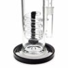 The Grav Coil Showerhead Perc Bong is an innovative water pipe equipped with a unique spiraling air path that not only looks amazing, but works to effectively cool down any rip you dare to challenge. As you inhale, your smoke will travel down the reinforced downstem and enter the base of the coil. Each hit is sent spiraling upwards through the clear glass coil, providing both an exceptional visual to watch and effectively extending the air path to give your smoke maximum time to cool down. The top of the coil redirects your smoke back into the base of the bong where a showerhead percolator sits ready for action. The showerhead perc uses multiple slits in the glass to diffuse each hit through water, filtering and moisture conditioning your smoke to silky smooth magnificence.