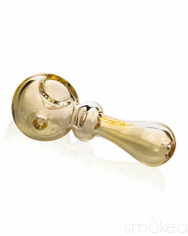 The new Bauble V2 Spoon from GRAV (formerly Grav Labs) is a pipe with simple functionality and an elegant look and design – a perfect spoon to add a bit of variety to your collection. Version 2 of the Bauble Spoon is a bubblier design with a refresh giving it more curves and smoother lines. It features a higher capacity bowl when compared to it’s predecessor that is angled away from your hand making it easier to light. The Bauble spoon features a large glass maria that has been widened out giving smoke more room to move. It’s finished with a GRAV Decal, and best of all – an inverted ash catcher mouthpiece. The Bauble spoon is perfect for those looking for an affordable glass pipe with a unique design from a brand known and trusted in the glass industry.
