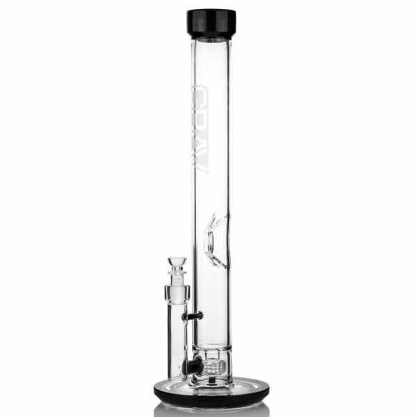 The Grav Extra Large 20” Straight Tube Bong comes ready to rip with an 18mm Grav Cup Bowl. The 18mm female joint holds the bowl upright at a 90-degree angle for easy lighting of your favorite dry herbs. The neck is finished with a sandblasted GRAV decal for extra style while the extra large rounded mouthpiece just above the logo provides you with airtight draws and an unrivaled grip for handling this behemoth. The reinforced Dewar’s joint, the small glass arm connecting the joint to the body of the straight tube, features color-matching glass and works to keep your new investment safe while being handled by some of your not-so-careful friends. The 3.5” inch wide flared base also works to keep your water pipe sitting upright and stable between uses. Choose between an entirely clear body for a more scientific glass look, or grab this massive straight tube with matching black accents on the rounded mouthpiece, flared base, matrix perc, and reinforced downstem. If you like big bongs and you cannot lie, the Grav Extra Large 20” inch Straight Tube Bong is the piece for you.