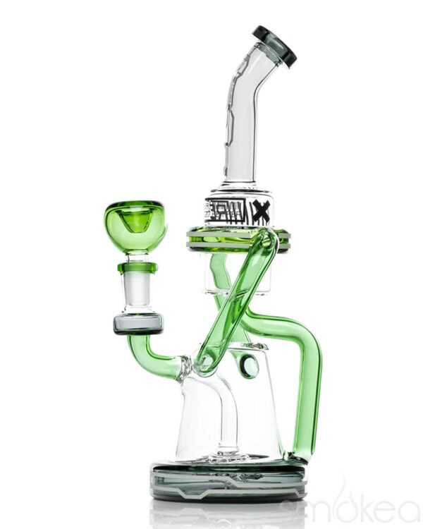 If you thought the regular Cyberpunk Bong from Hemper was from a different time, check out the XL Cyberpunk Recycler Bong. This futuristic bong stands 12″ tall and features a recycler design with a vortex drain effect for the smoothest rips possible. The base of the water pipe also features a showerhead percolator so you can make sure your smoke is filtered perfectly. The XL Cyberpunk bong comes complete with a 14mm dry herb bowl, frosted and glow in the dark decals.