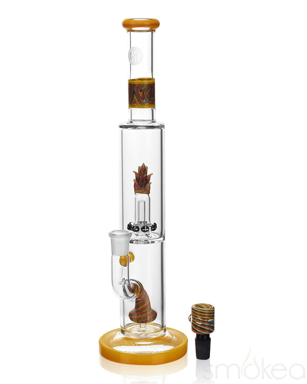 At the heart of the Cygnus Bong lies a mesmerizing combination of a worked wig wag UFO perc and High Society’s exclusive ‘bell dome’ perc. This extraordinary pairing creates an unrivaled level of cooling that ensures the smoothest rips without sacrificing an ounce of flavor. Say goodbye to the harshness of dry herb smoke as the Cygnus works its magic. The UFO perc, coupled with the bell dome perc, delivers exceptional cooling and lubrication, resulting in an effortlessly enjoyable and flavor-packed smoking experience.
