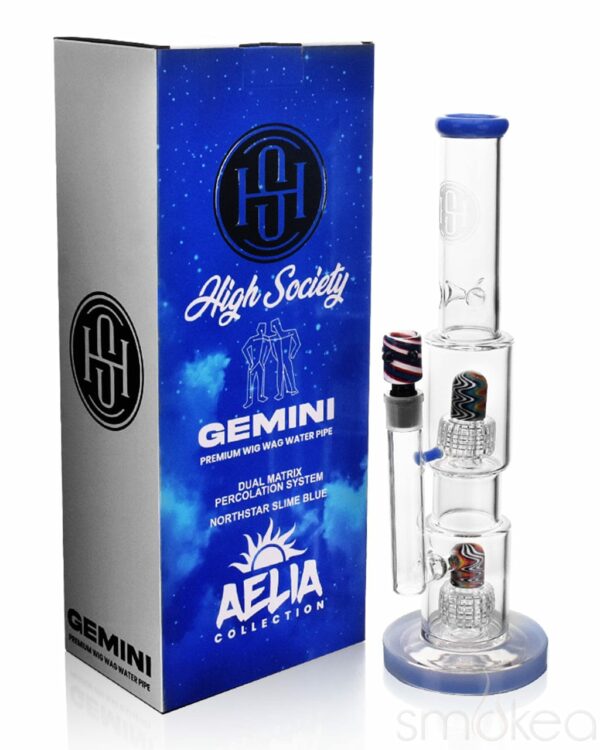 Experience the epitome of smoking sophistication with the High Society Gemini Bong. Meticulously designed and expertly crafted, this double matrix straight tube takes your smoking sessions to new heights, delivering rips that are both cool and incredibly flavorful.