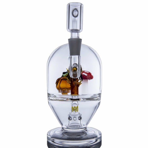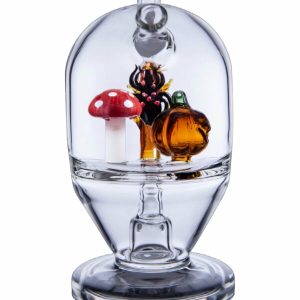 There is always more than meets the eye with MJ Arsenal Mini Rigs, and the Spellbinder Rig transports each dab into the upper chamber through holes in the glass jack-o-lantern and beneath the glass mushroom figurine. This unique mini rig is made with super thick borosilicate glass, and the clear body allows you to watch as dense โfogsโ roll in and out of this frightening ecosystem. Snag the MJ Arsenal Limited Edition Spellbinder Mini Rig before theyโre gone for good and enjoy scary smooth rips just in time for Halloween!
