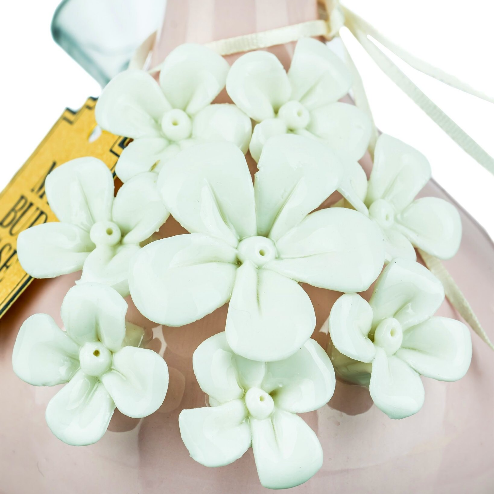 Prim and proper, the Rachel Water Pipe from My Bud Vase makes ripping a beaker bong an elegant affair. Rachel’s beauty entrances you while the high functionality is a sweet surprise. With pink porcelain throughout the bong and white relief flower accents, this stunning bong will easily blend into your everyday decor. The worked flower accents on the side of the beaker base match the included faux flower poker tool, complete with decorative rhinestone rosettes that provide just the right amount of sparkle. This poker tool can be conveniently used to clean out the included bowl slide & rubber grommet with the pointed end at the base. When not in use, the Rachel Water Pipe can be disguised as a stunning flower vase by simply removing the bowl, inserting the included faux flowers into the flared mouthpiece, and rotating the vase to hide the rubber grommet!