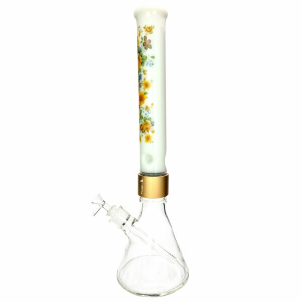 The Prism Pipes Halo Vintage Floral Beaker Bong is the perfect starter piece for your custom bong collection. It comes with the Vintage Floral Tall Mouthpiece, 7mm thick Beaker Base, a Diffuser Downstem and 14mm Male Bowl Slide, and a Gold Halo Connector. With Prism Pipes’ custom bong system, it’s easy to break it down for cleaning, replacing parts, or bringing on your next adventure.