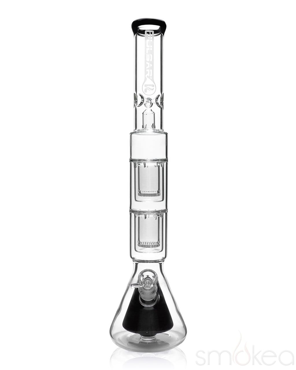 You read that right – QUAD percolators. The 21″ Quad Perc Beaker Bong from Pulsar is one of the baddest, most heavy-duty bongs we carry. It’s also one of the tallest glass bongs we carry, standing 21.5″ tall. Featuring dual honeycomb and showerhead percolators, this water pipe will not only provide some of the largest hits you’ve ever experienced, but some of the smoothest. The quad percs in combination with the built in ice catcher will also cool your smoke so it’s easier to inhale those massive rips. If you’re ready to take on some monster rips look no further.