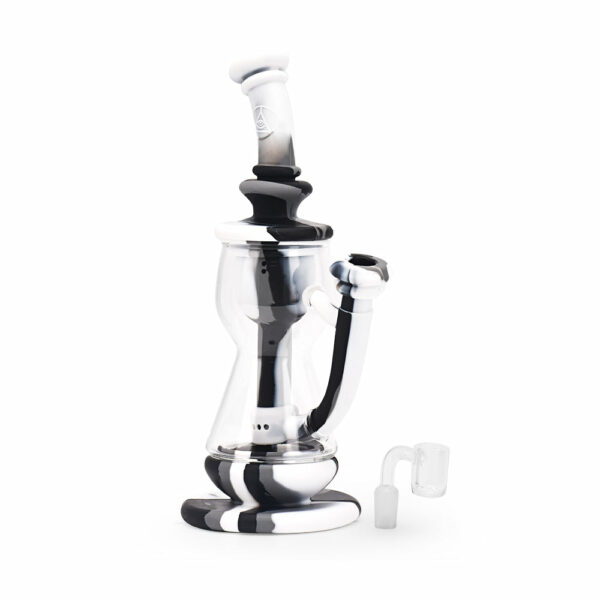 This incycler-style water pipe is not only made of platinum-cured silicone but also incorporates borosilicate glass, enhancing its aesthetic appeal. It features a 14mm female joint and a fixed reinforced downstem, further contributing to its robust construction and smooth smoke delivery. The unique air path and function of the rig are designed to provide big and flavorful rips of your dabs The durable silicone construction is virtually indestructible, making the rig a reliable choice for travel.