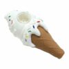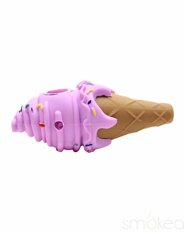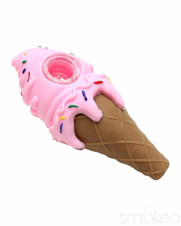 Perfect for summer time smoking. This hybrid ice cream cone pipe features an indestructible silicone body and glass bowl with built in screen. All parts disassemble for easy cleaning. The glass screen bowl prevents any unwanted scooby snacks during your smoke sesh. Available in several colors and measures approximately 4.5″ in length.