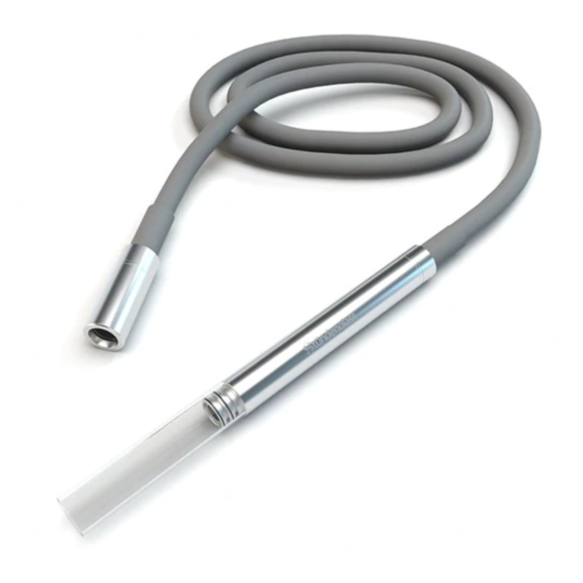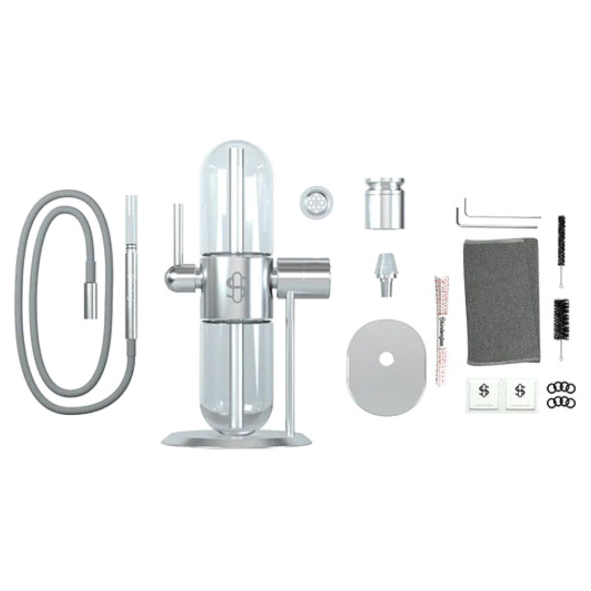 The Stundenglass Polished Silver Gravity Pipe features a super unique aesthetic with customizable parts and a simple-to-use design. Stundenglass set out to create a perfect gravity bong that pushes smoke out for you, rather than using a shared mouthpiece like every other glass pipe. The unique patent-pending design requires no battery or motor, just a simple 180° rotation that uses gravity to light your materials. Some materials such as shisha require coals to continue burning, so a partial turn will create the perfect amount of suction to keep your coals lit while providing consistently rich & smooth hookah hits. Once you fill the Stundenglass chamber with smoke, rotate 180° again for a smooth flow of smoke that pours out the mouthpiece or hookah hose attachment. The potency & strength of your smoke depends on how far you decide to flip the unit over, using gravity to control the ignition of materials and output of smoke. This gravity bong’s special design allows you to take as little or as much smoke as you want. Unleash the true power of gravity for a full chamber of smoke or pause it and share with friends by turning the chamber parallel to your tabletop.