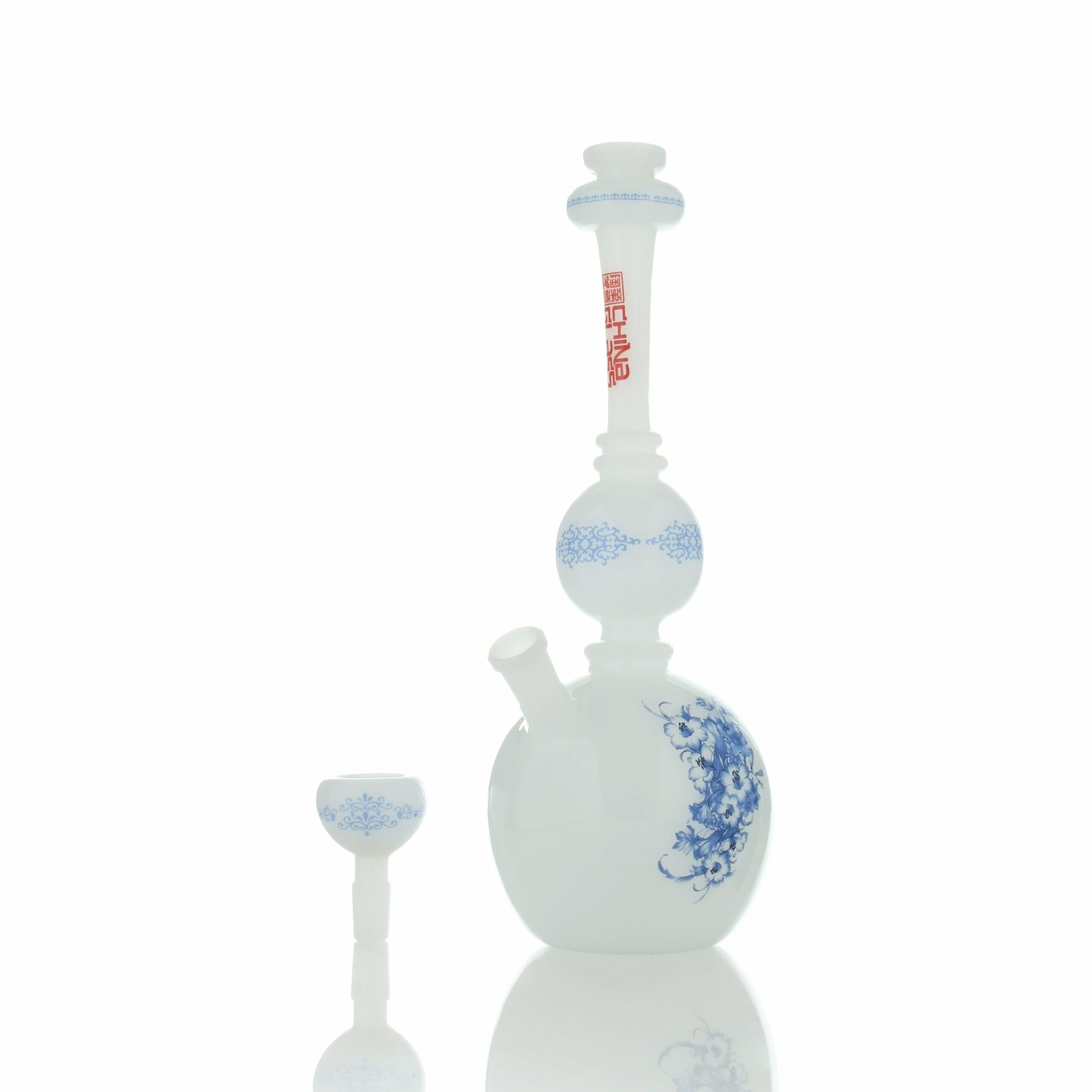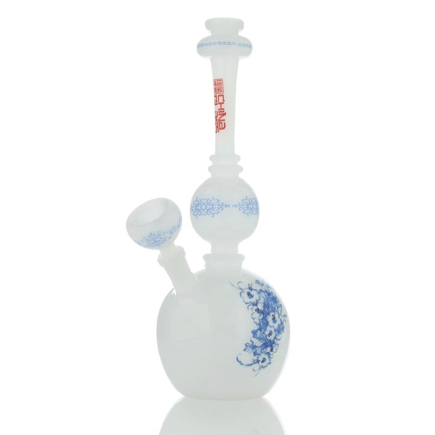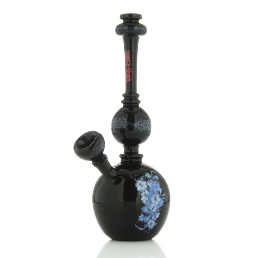The “Tang” Water Pipe was designed in China to closely resemble an elegant vase honoring the Tang Dynasty. This particular 11” pipe features your choice of a white or black glass body, a simple diffused downstem with a 14.5mm polished joint & matching bowl, and an ornate history of inspired decals throughout body. A homage to the tradition of Chinese porcelain, this water pipe raises the standard for purchasing elegant glassware.