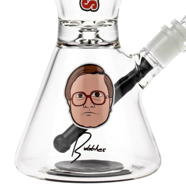 No kittehs… just Bubbles on this beaker-based hourglass piece from the Trailer Park Boys water pipe collection. Bubbles is the true king of Sunnyvale, and this piece might be the best in the collection. The hourglass shape has an ice pinch so you can chill out with your smoke, and the 14mm ground glass bowl makes the Bubbles water pipe super easy to clean, upgrade, sidegrade or add whatever you please.